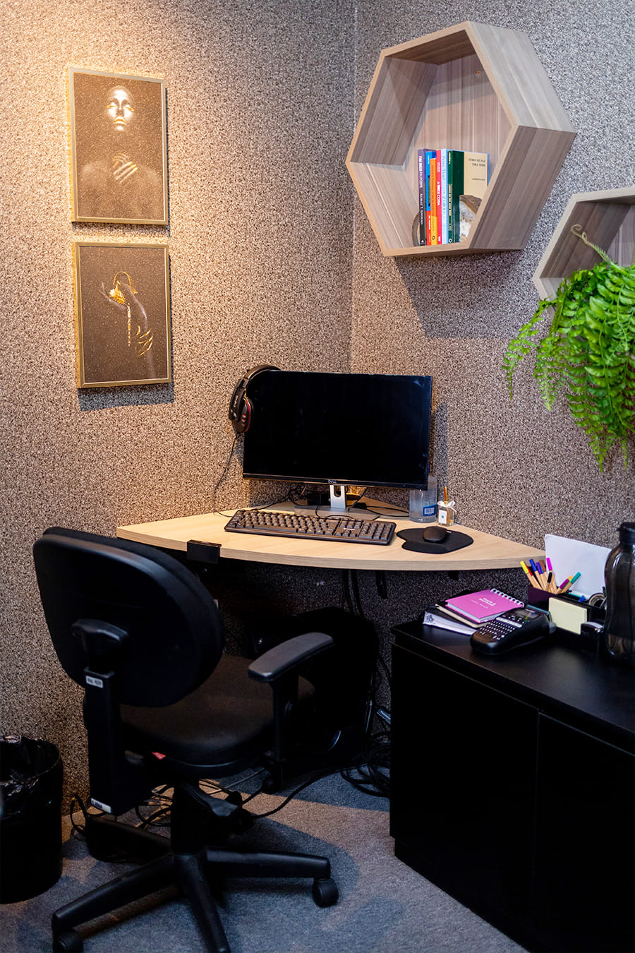 Garantimos áudio cristalino com isolamento acústico de ponta e vídeo de alta resolução graças às nossas câmeras e iluminação profissionais. Equipado com microfones de lapela, púlpito e Chroma Key (tela verde), oferecemos todas as ferramentas para você criar conteúdo impactante e sem preocupações técnicas.